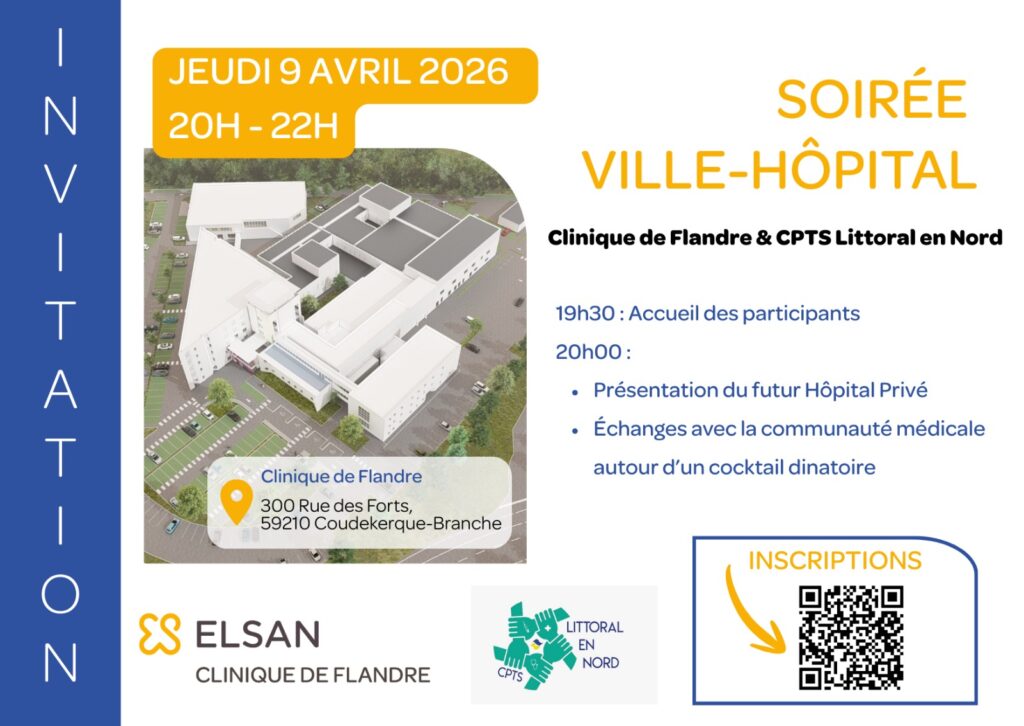 La CPTS Littoral en Nord, en partenariat avec la Clinique de Flandre, a le plaisir de vous inviter à une soirée d’échanges .
